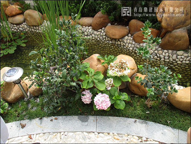 黃蠟石做駁岸搭配貼壁卵石,幾經(jīng)雨水沖刷,充滿了韻味。