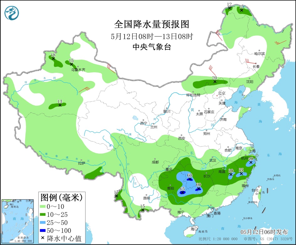 未來三天,長江以南、河北、黑龍江等地的部分地區(qū)有中到大雨,部分地區(qū)有5~7級風(fēng)。